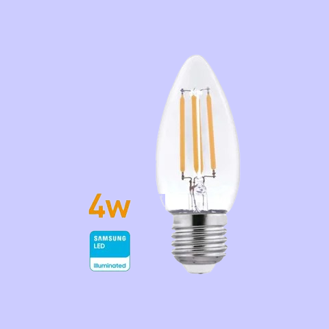 La lámpara de filamento de LED Vela E27 de 4W es la elección perfecta para quienes buscan una iluminación cálida y acogedora, esta bombita emite una luz suave que transforma cualquier espacio en un ambiente confortable y relajante. Su diseño en forma de vela añade un toque de elegancia y estilo, ideal para lámparas de mesa, candelabros o cualquier rincón que necesite un toque especial.